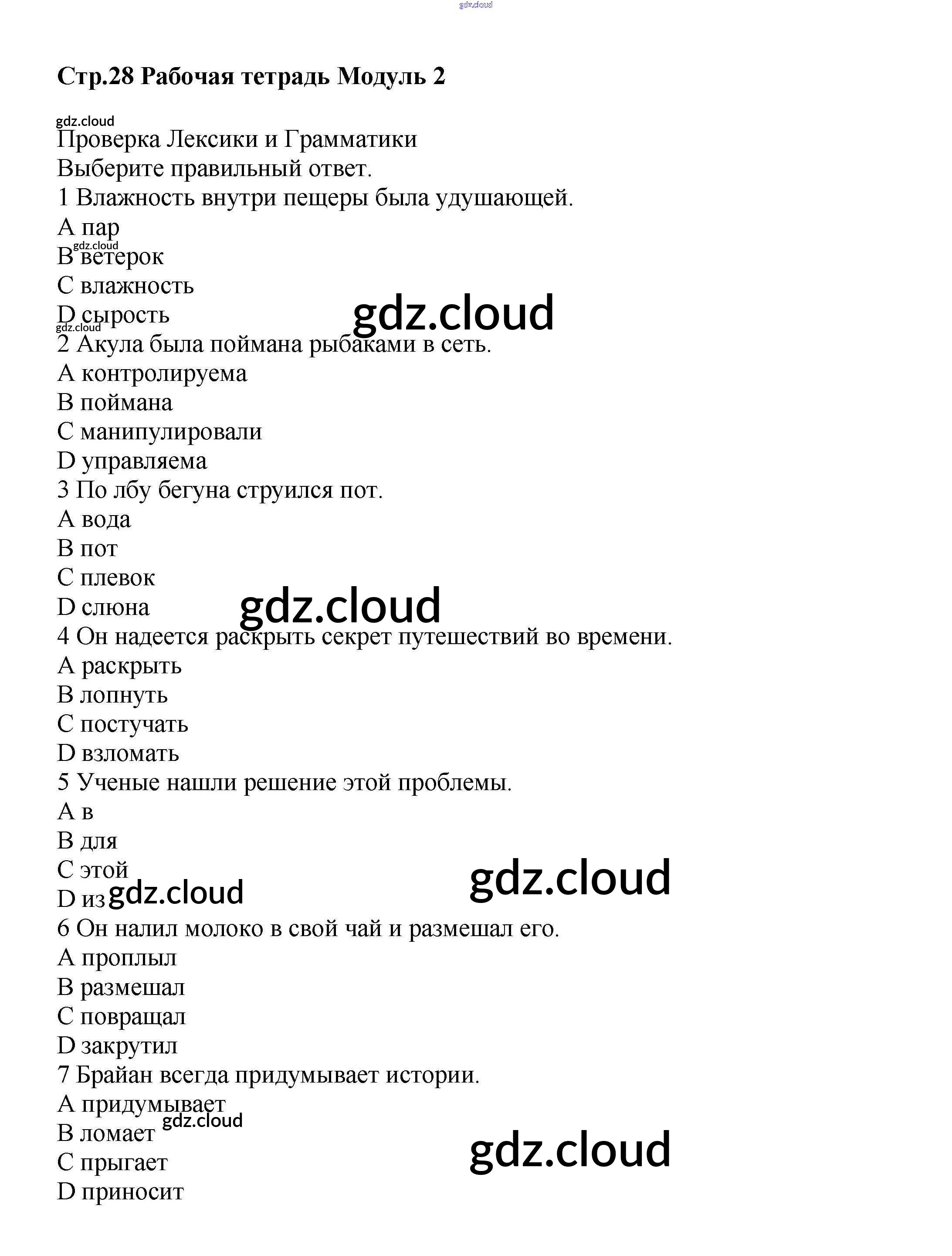Ответ на задание стр.28 Рабочая тетрадь Английский язык за 9 (девятый) класс Баранова, Дули, Эванс, Копылова, Мильруд Starlight Углубленный уровень 2017
