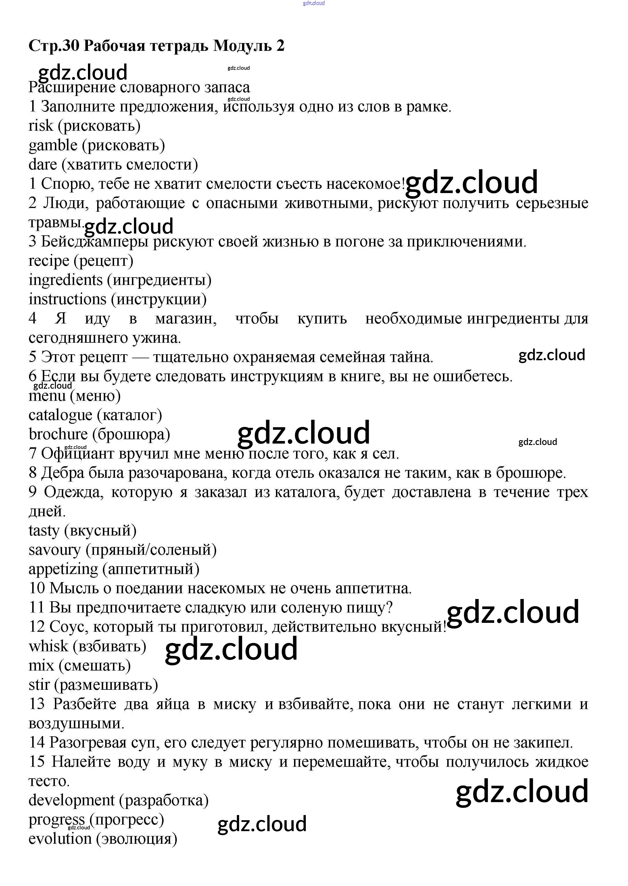 Ответ на задание стр.30 Рабочая тетрадь Английский язык за 9 (девятый) класс Баранова, Дули, Эванс, Копылова, Мильруд Starlight Углубленный уровень 2017