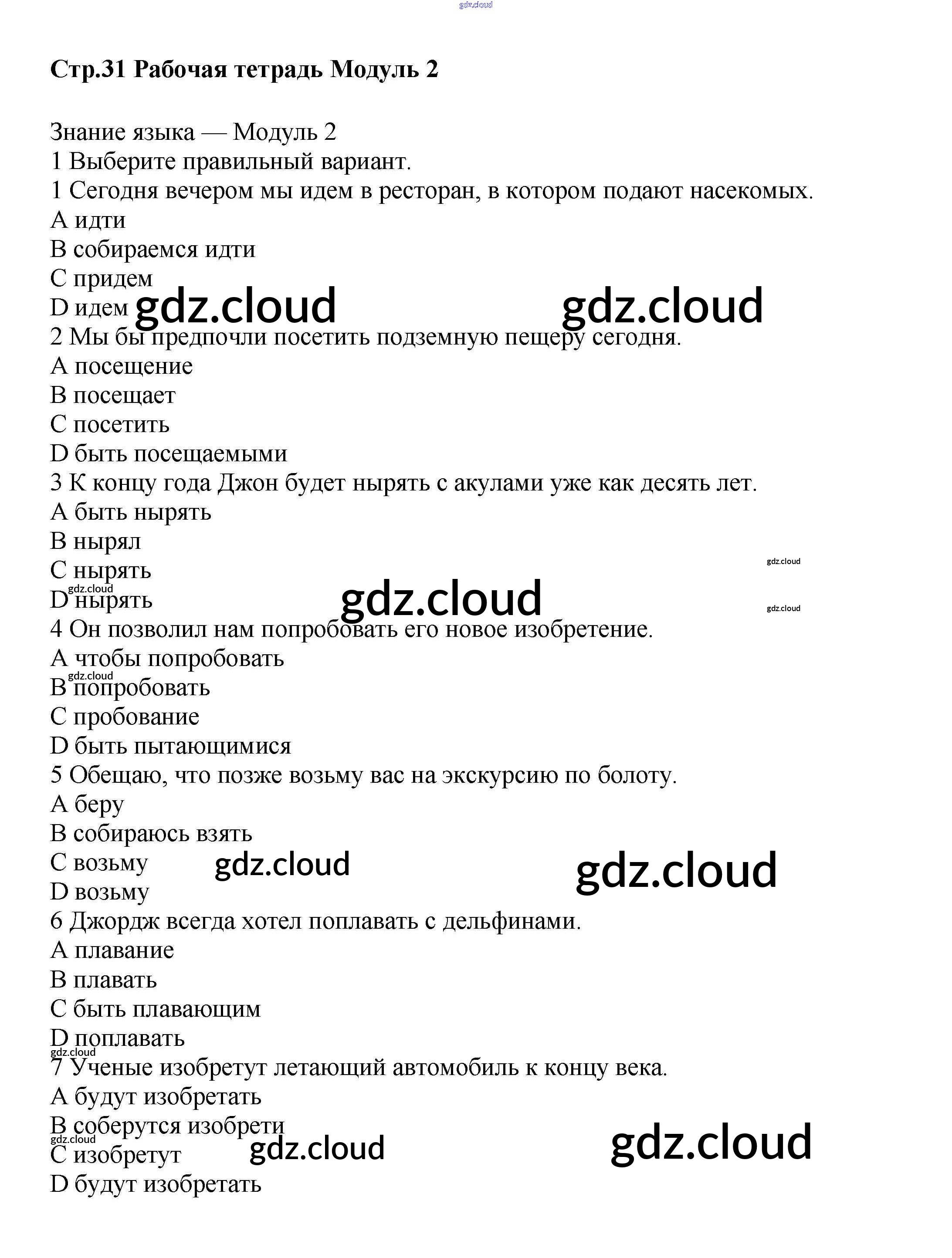 Ответ на задание стр.31 Рабочая тетрадь Английский язык за 9 (девятый) класс Баранова, Дули, Эванс, Копылова, Мильруд Starlight Углубленный уровень 2017