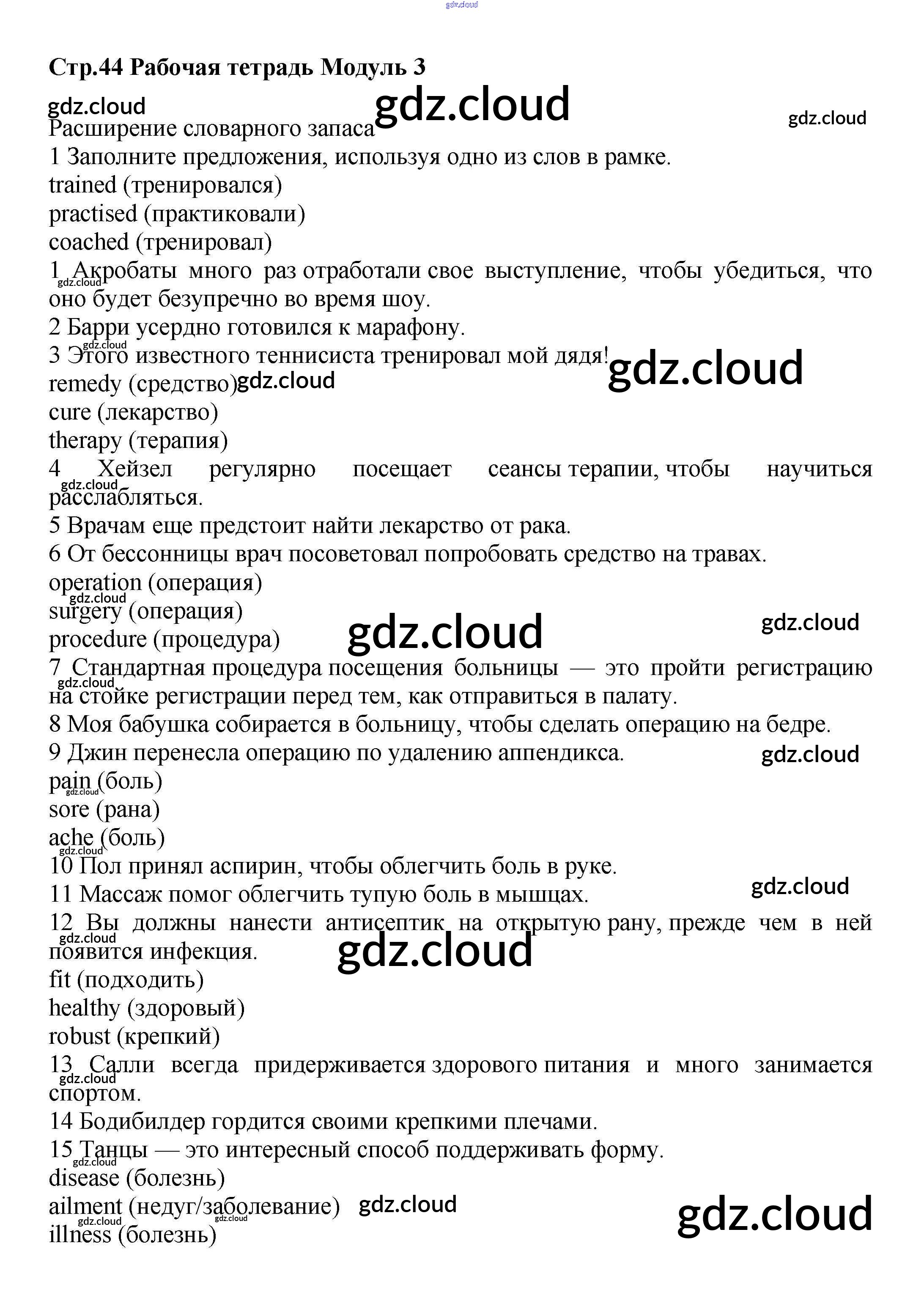 Ответ на задание стр.44 Рабочая тетрадь Английский язык за 9 (девятый) класс Баранова, Дули, Эванс, Копылова, Мильруд Starlight Углубленный уровень 2017