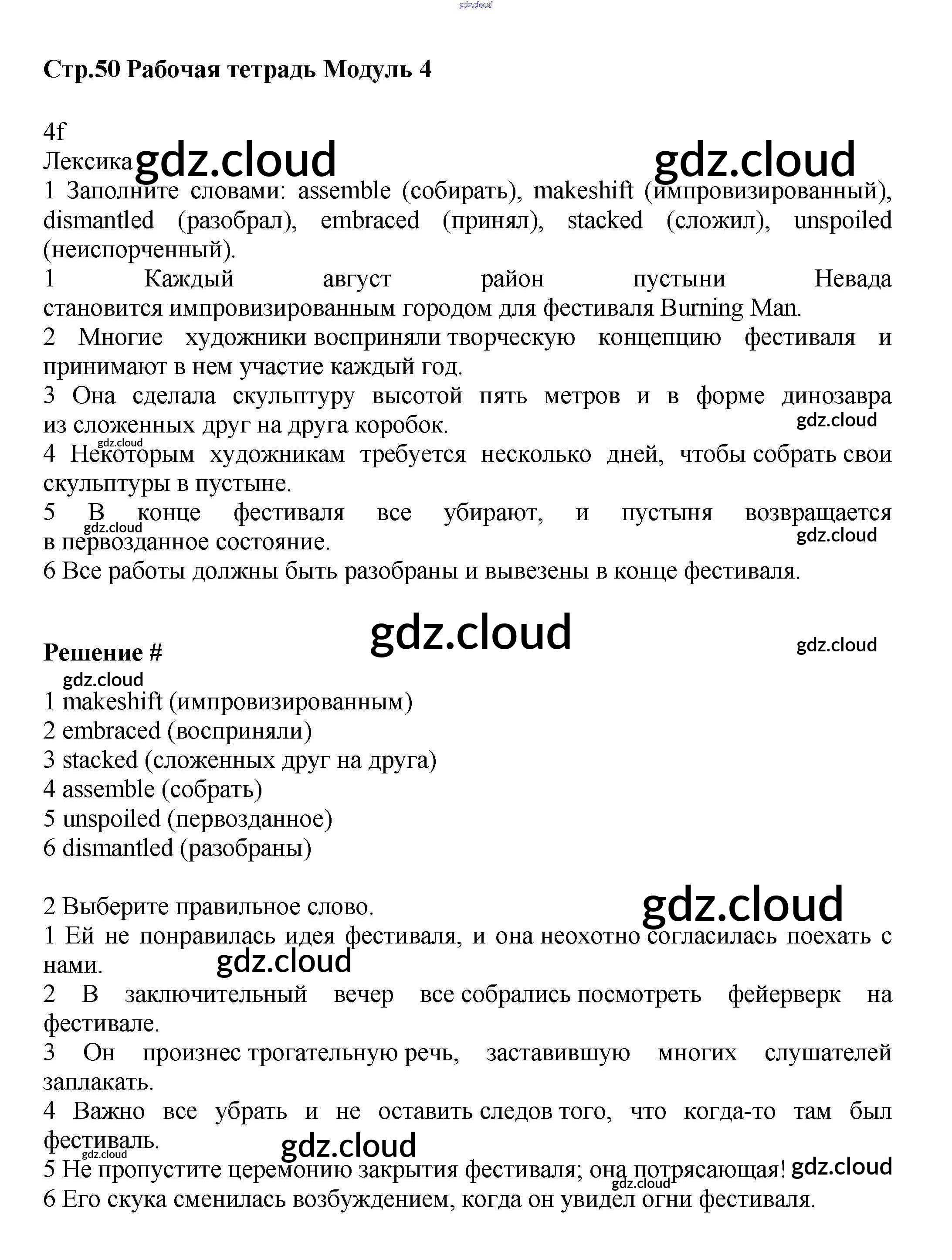 Ответ на задание стр.50 Рабочая тетрадь Английский язык за 9 (девятый) класс Баранова, Дули, Эванс, Копылова, Мильруд Starlight Углубленный уровень 2017