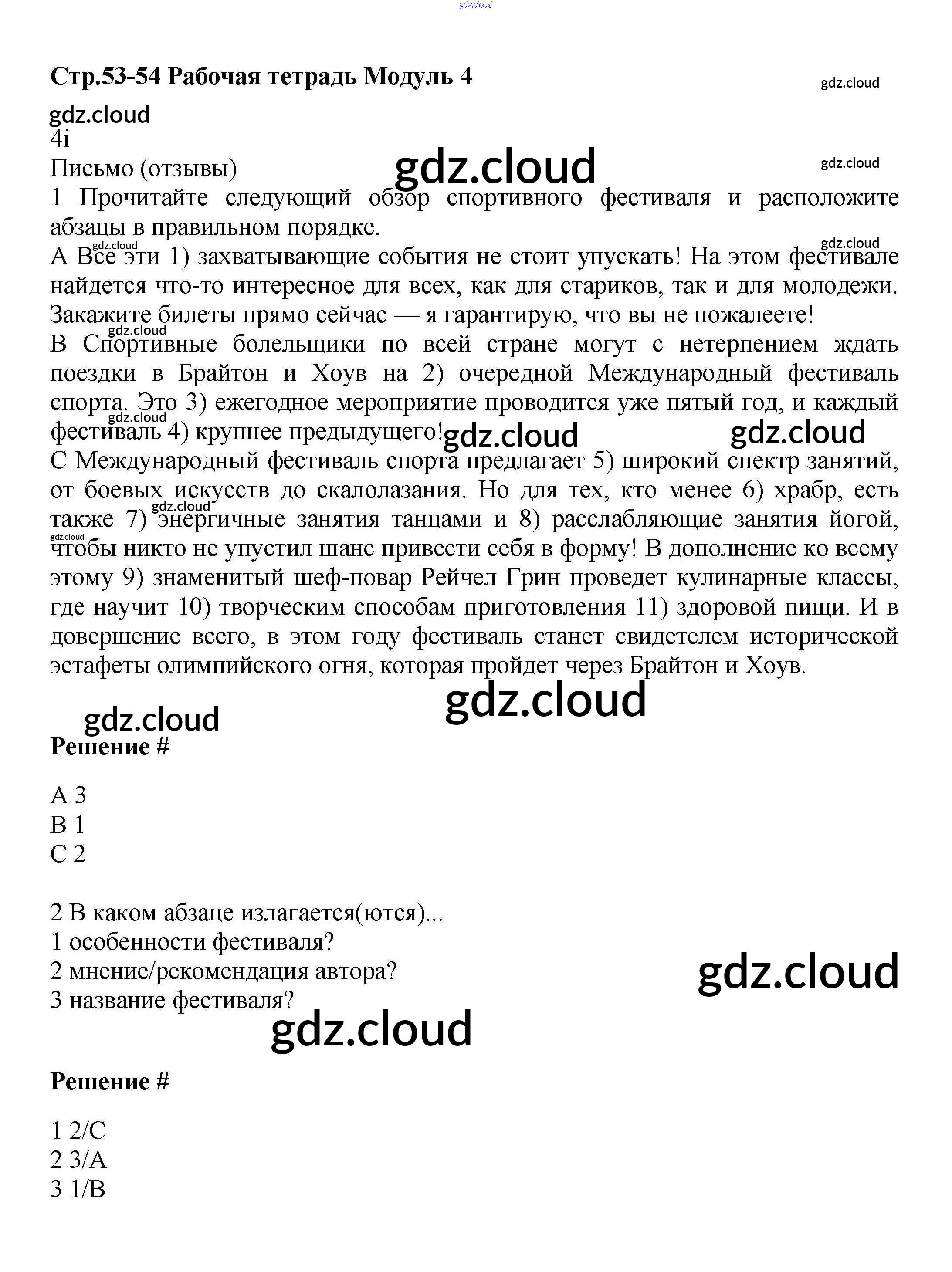 Ответ на задание стр.53-54 Рабочая тетрадь Английский язык за 9 (девятый) класс Баранова, Дули, Эванс, Копылова, Мильруд Starlight Углубленный уровень 2017