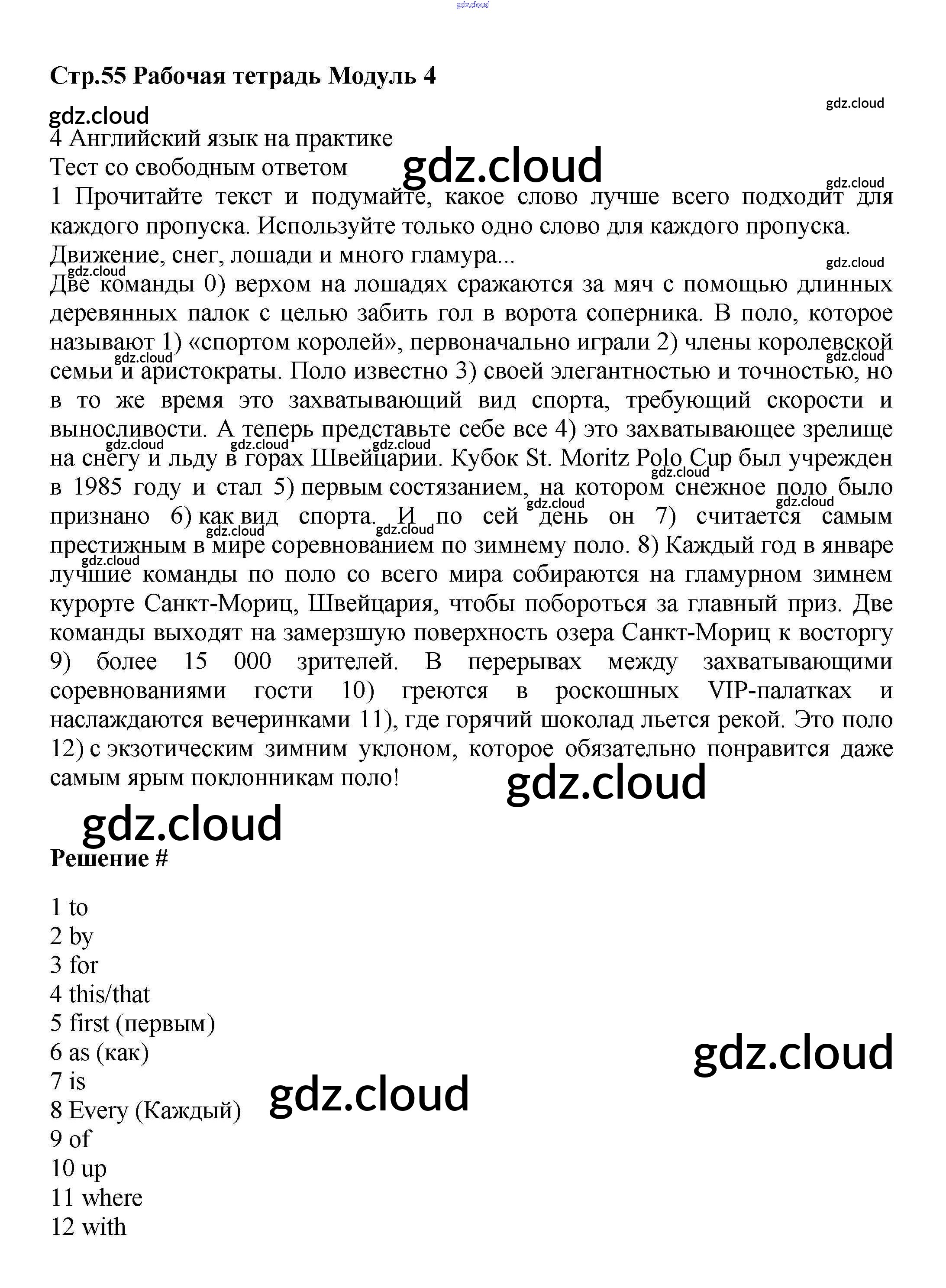 Ответ на задание стр.55 Рабочая тетрадь Английский язык за 9 (девятый) класс Баранова, Дули, Эванс, Копылова, Мильруд Starlight Углубленный уровень 2017