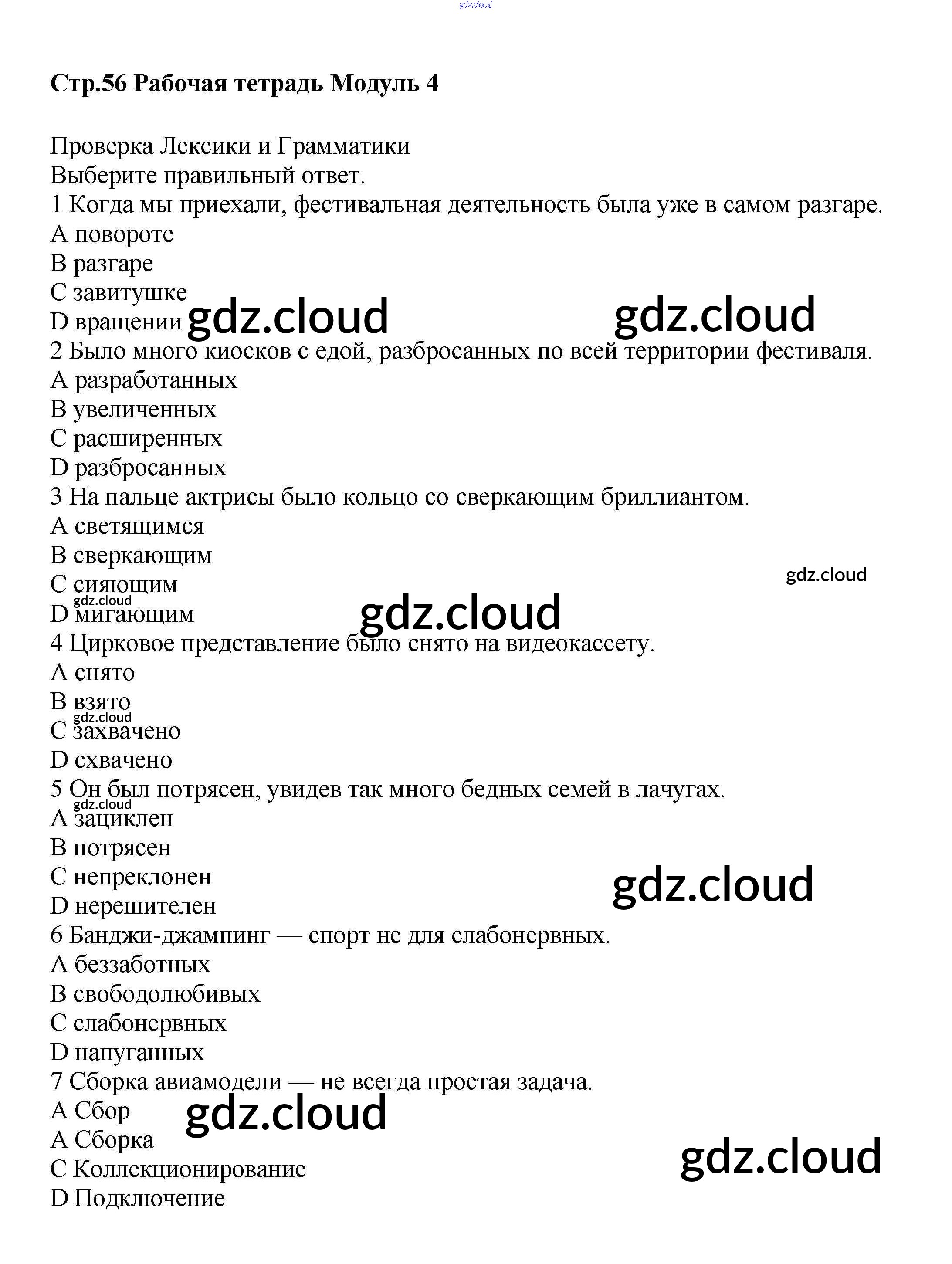 Ответ на задание стр.56 Рабочая тетрадь Английский язык за 9 (девятый) класс Баранова, Дули, Эванс, Копылова, Мильруд Starlight Углубленный уровень 2017