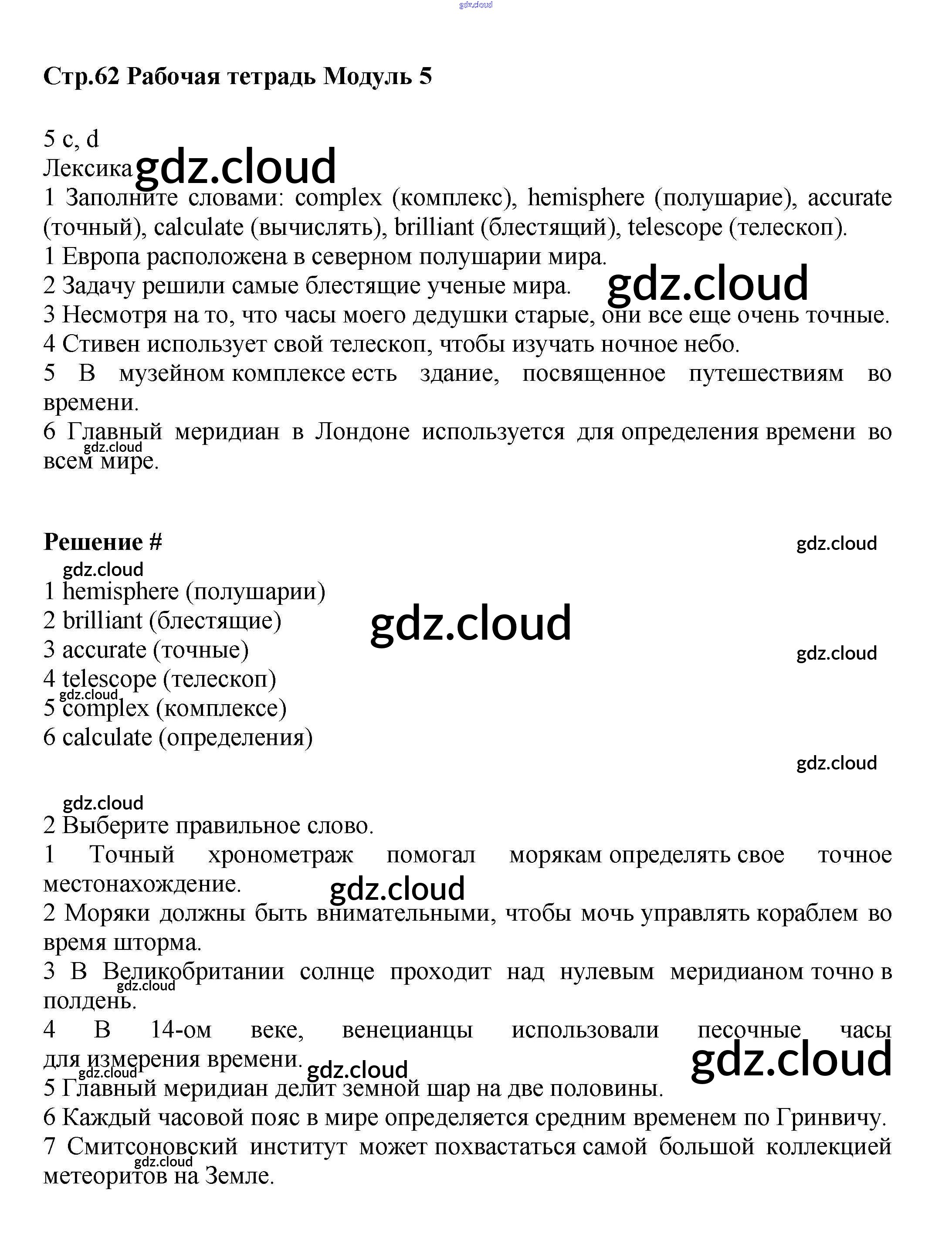 Ответ на задание стр.62 Рабочая тетрадь Английский язык за 9 (девятый) класс Баранова, Дули, Эванс, Копылова, Мильруд Starlight Углубленный уровень 2017