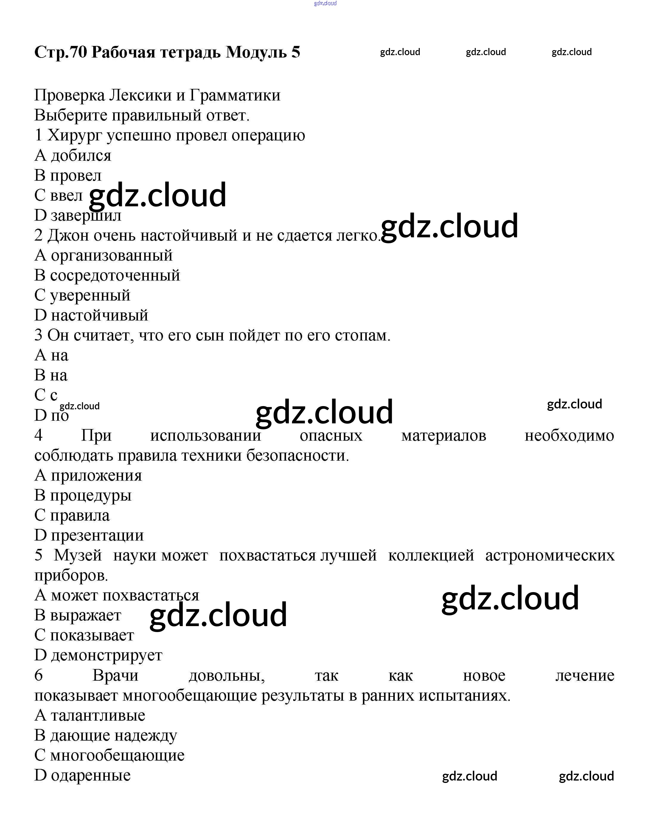 Ответ на задание стр.70 Рабочая тетрадь Английский язык за 9 (девятый) класс Баранова, Дули, Эванс, Копылова, Мильруд Starlight Углубленный уровень 2017