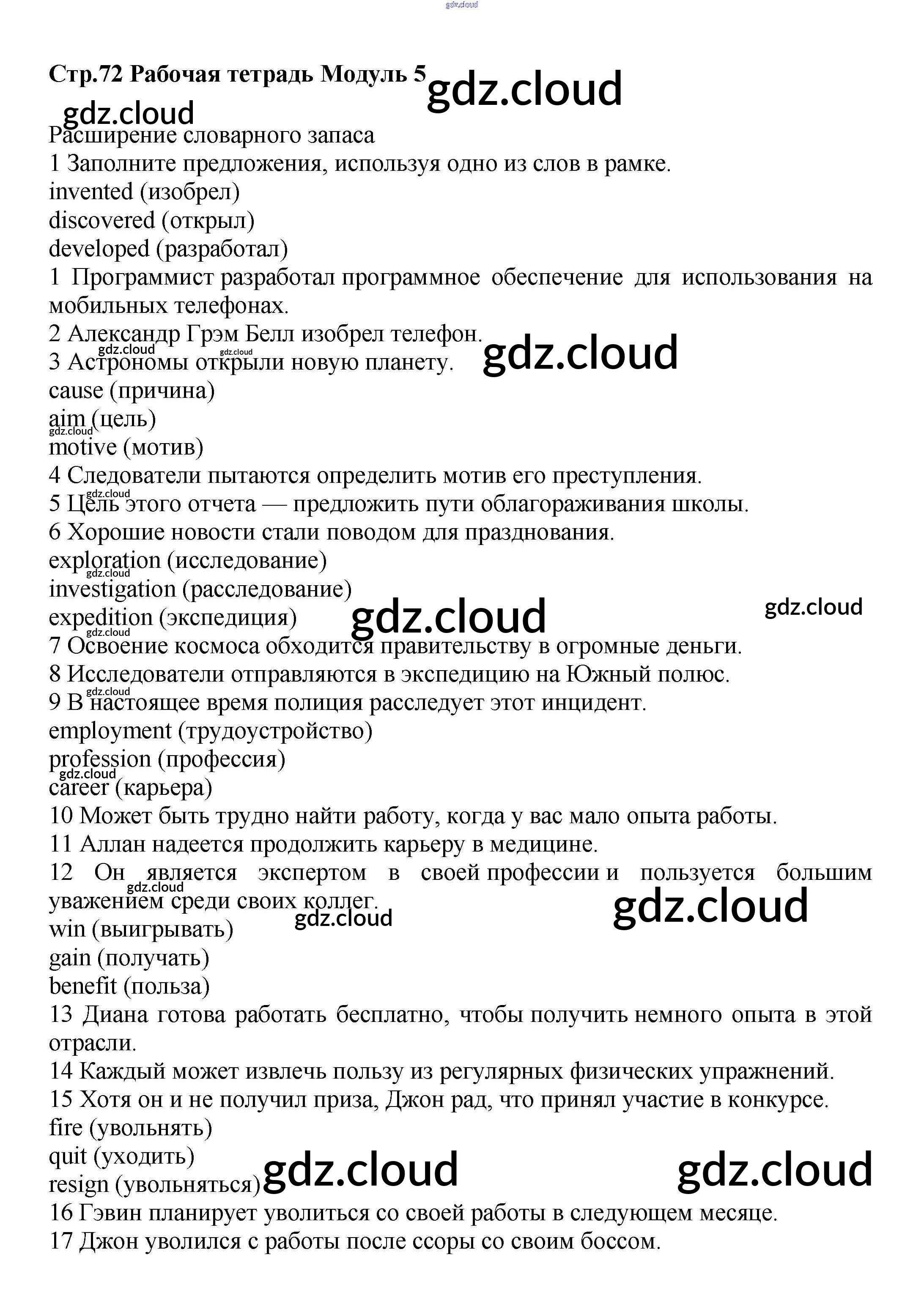 Ответ на задание стр.72 Рабочая тетрадь Английский язык за 9 (девятый) класс Баранова, Дули, Эванс, Копылова, Мильруд Starlight Углубленный уровень 2017
