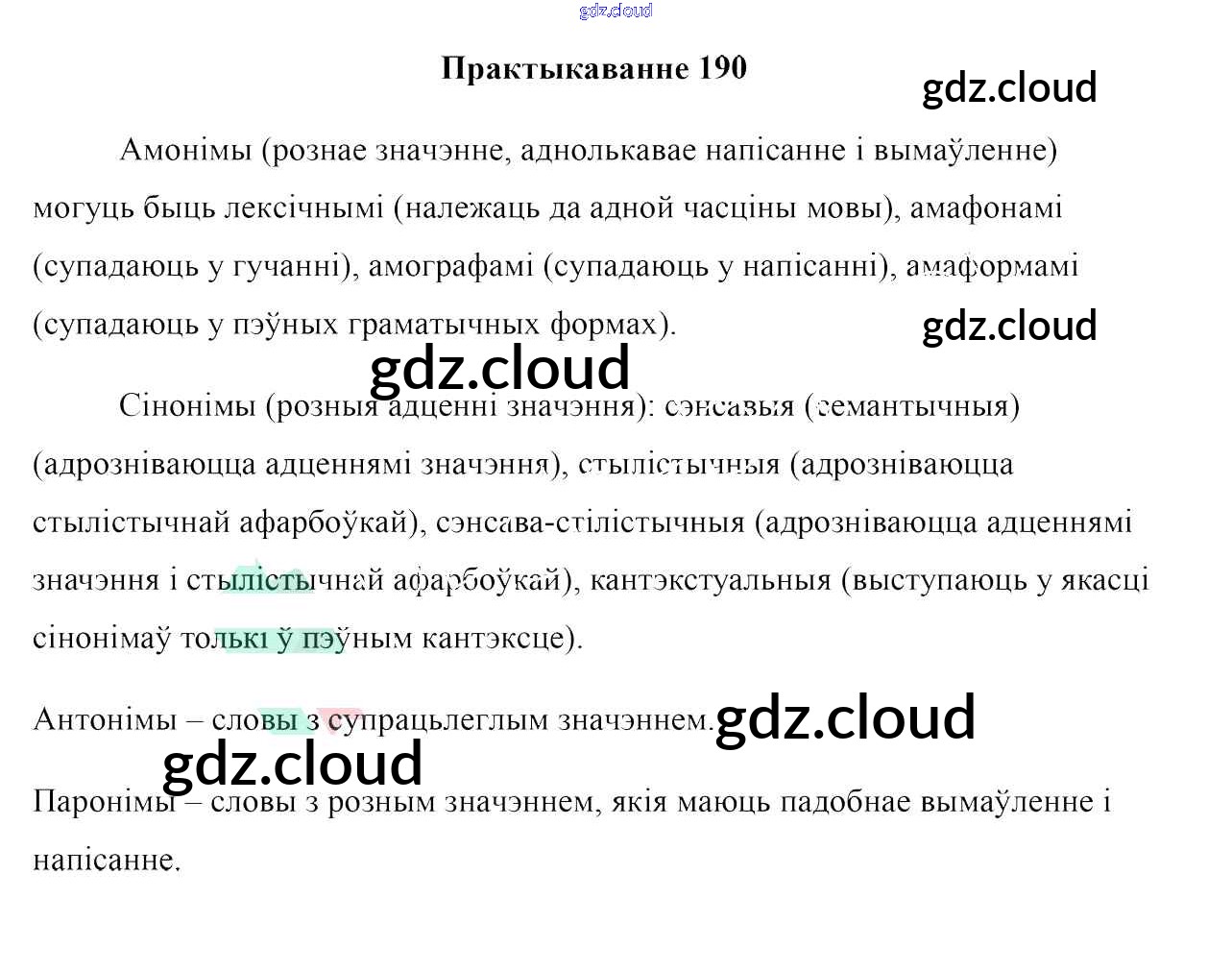 Ответ на задание 190 Учебник Белорусский язык за 10 (десятый) класс Валочка, Васюковіч, Зелянко, Міхнёнак, Якуба 2016