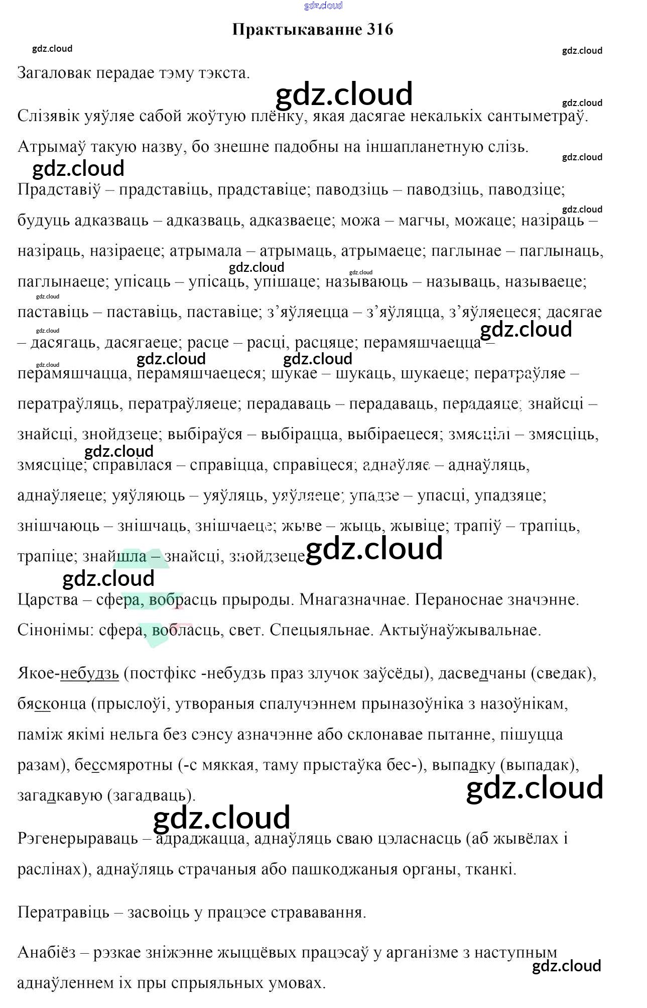 Ответ на задание 316 Учебник Белорусский язык за 10 (десятый) класс Валочка, Васюковіч, Зелянко, Міхнёнак, Якуба 2016