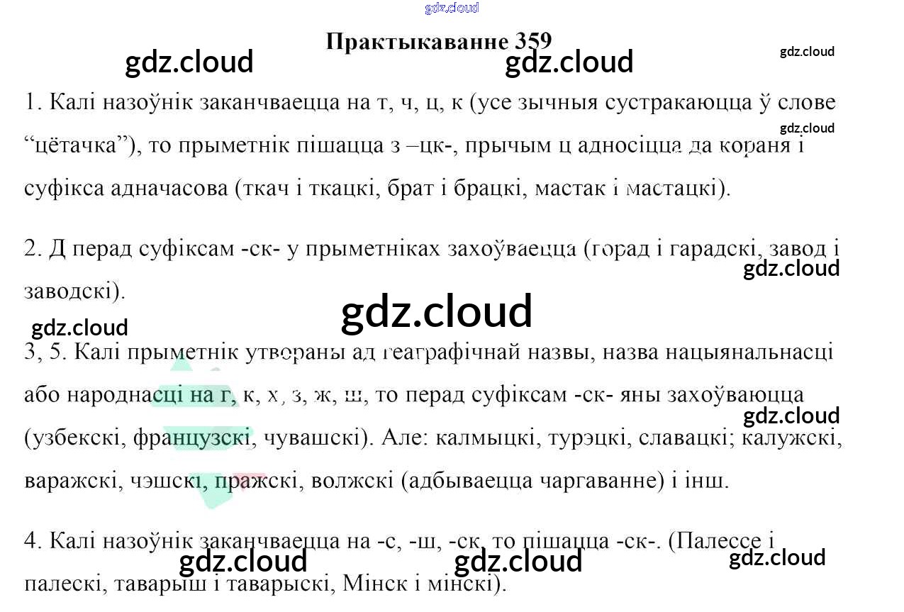 Ответ на задание 359 Учебник Белорусский язык за 10 (десятый) класс Валочка, Васюковіч, Зелянко, Міхнёнак, Якуба 2016