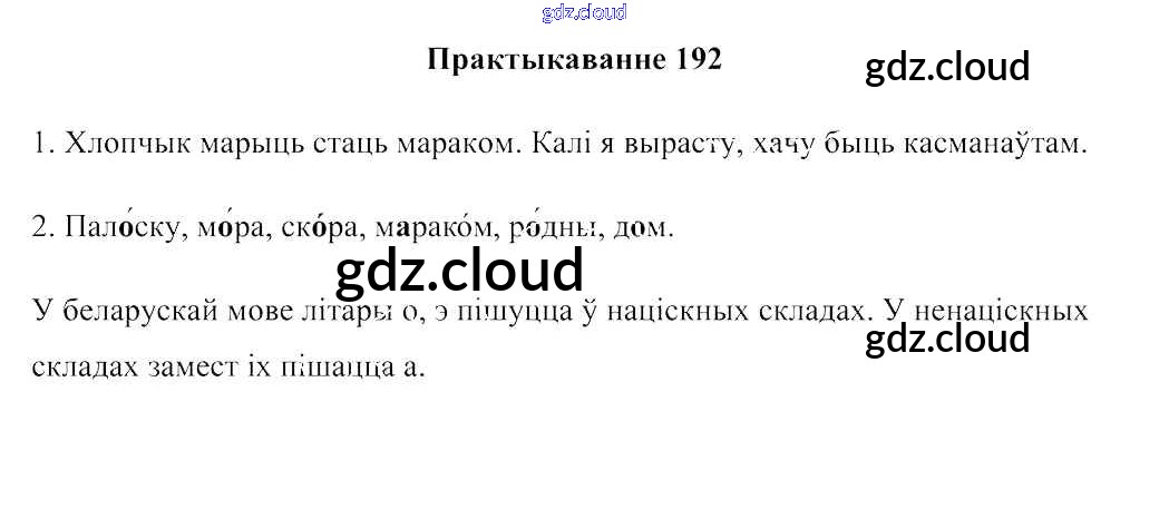 Ответ на задание 192 Учебник Белорусский язык за 2 (второй) класс Свірыдзенка 2016 Часть 1, 2