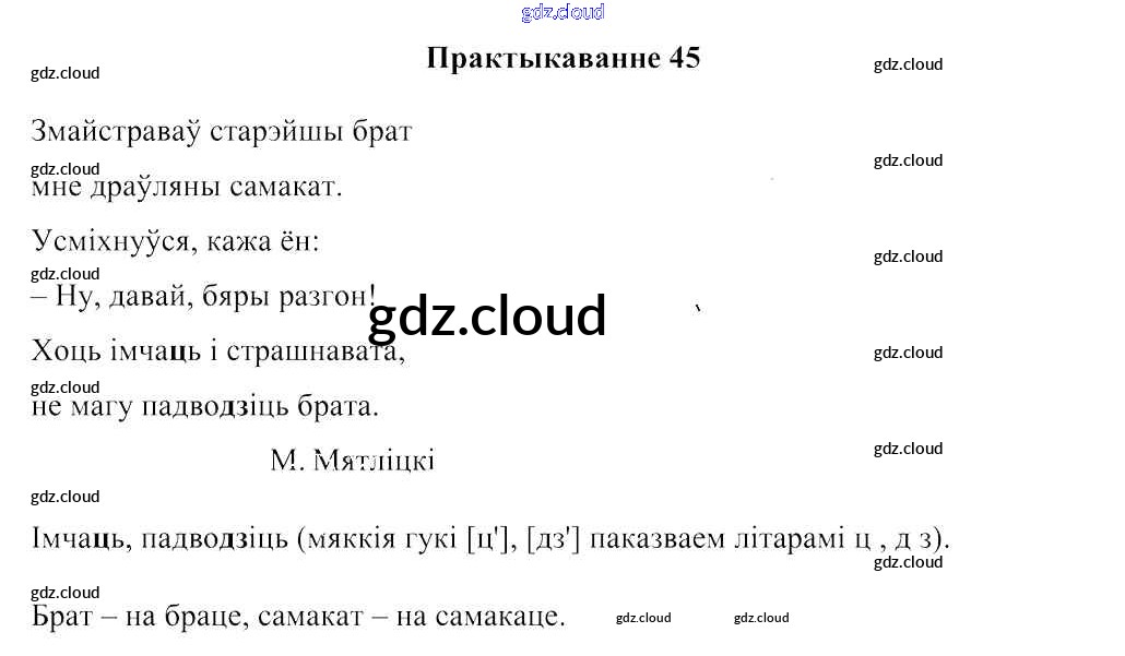 Ответ на задание 45 Учебник Белорусский язык за 2 (второй) класс Свірыдзенка 2016 Часть 1, 2