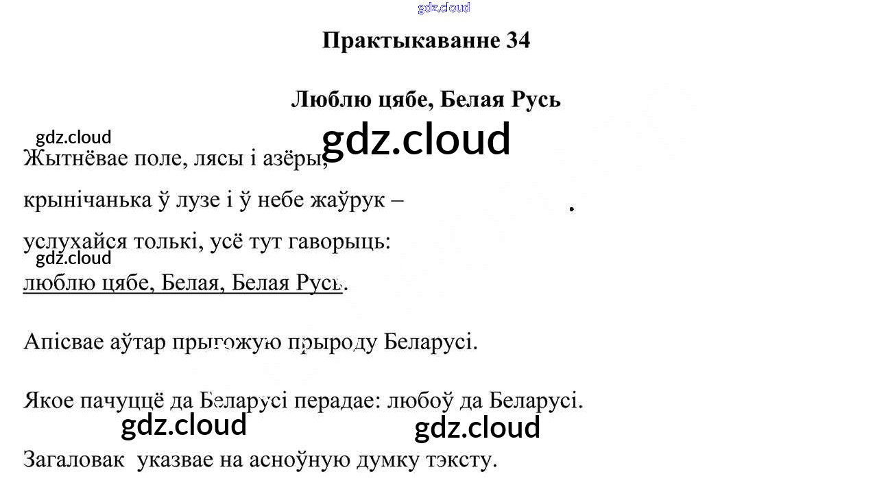 Ответ на задание 34 Учебник Белорусский язык за 3 (третий) класс Свірыдзенка 2017 Часть 1, 2
