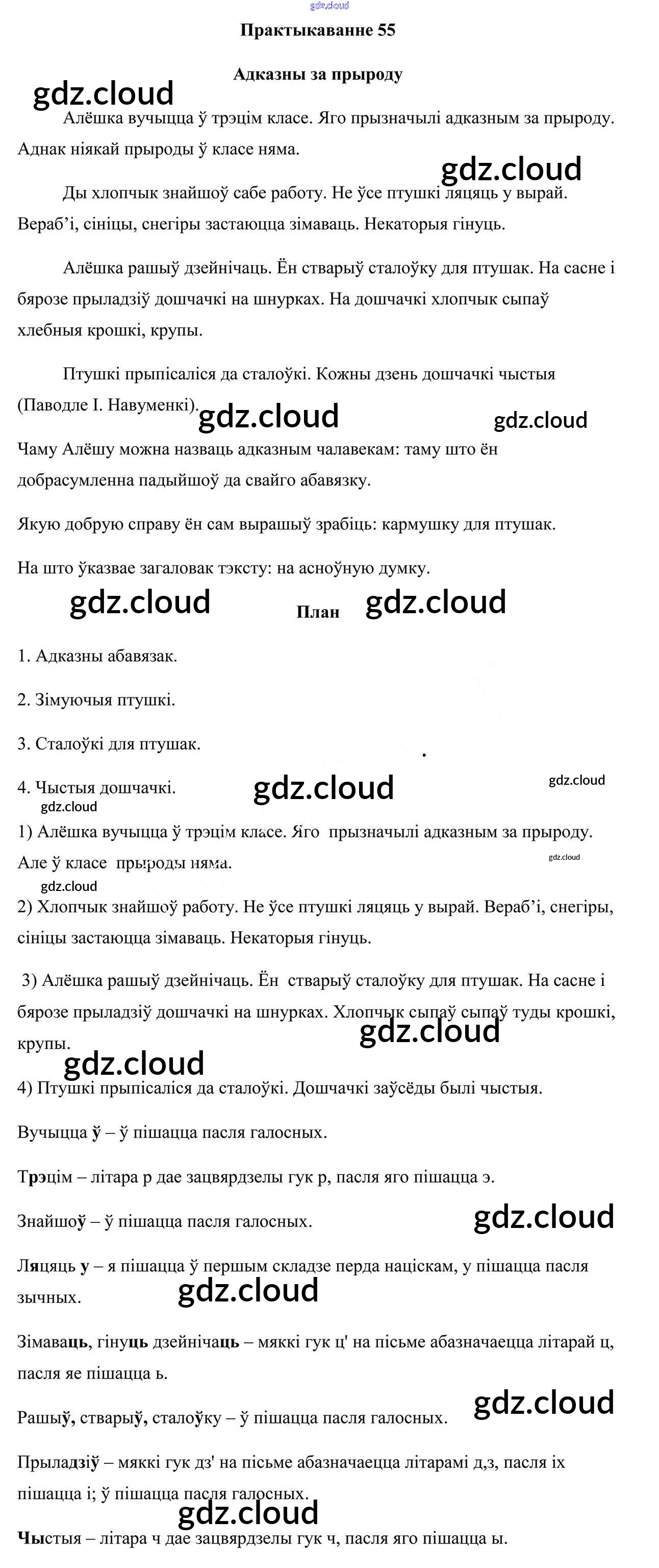 Ответ на задание 55 Учебник Белорусский язык за 3 (третий) класс Свірыдзенка 2017 Часть 1, 2