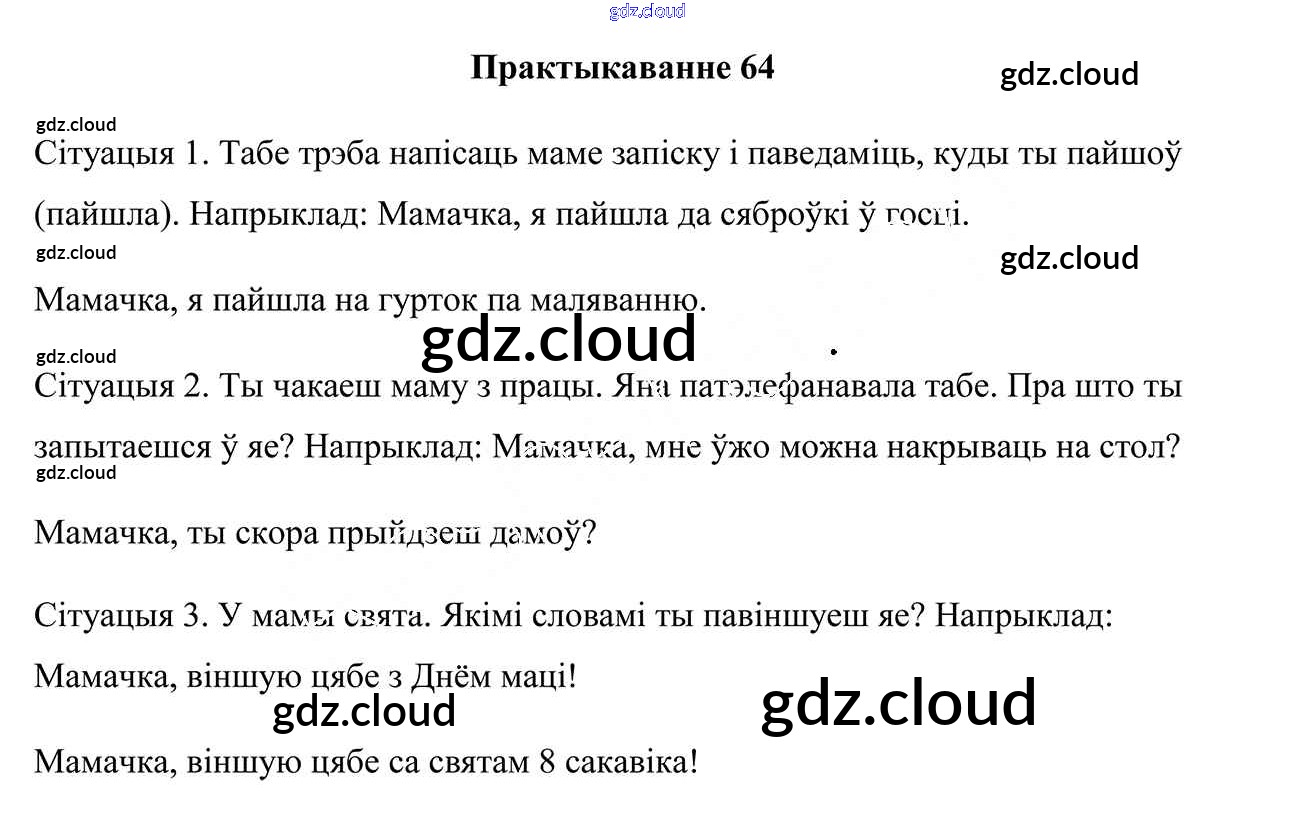Ответ на задание 64 Учебник Белорусский язык за 3 (третий) класс Свірыдзенка 2017 Часть 1, 2