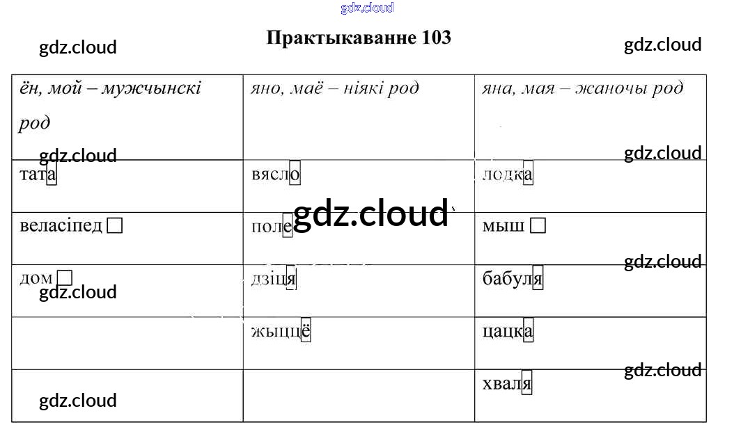 Ответ на задание 103 Учебник Белорусский язык за 3 (третий) класс Свірыдзенка 2017 Часть 1, 2