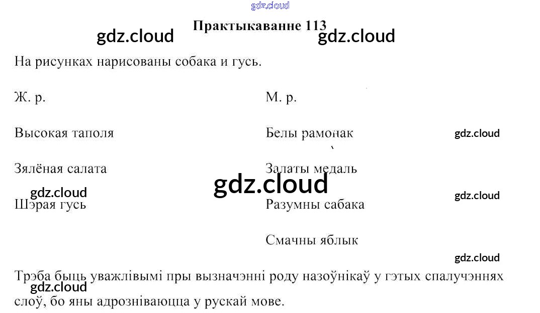 Ответ на задание 113 Учебник Белорусский язык за 3 (третий) класс Свірыдзенка 2017 Часть 1, 2