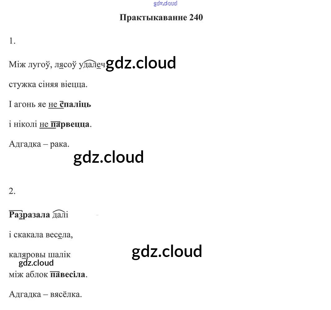 Ответ на задание 240 Учебник Белорусский язык за 3 (третий) класс Свірыдзенка 2017 Часть 1, 2