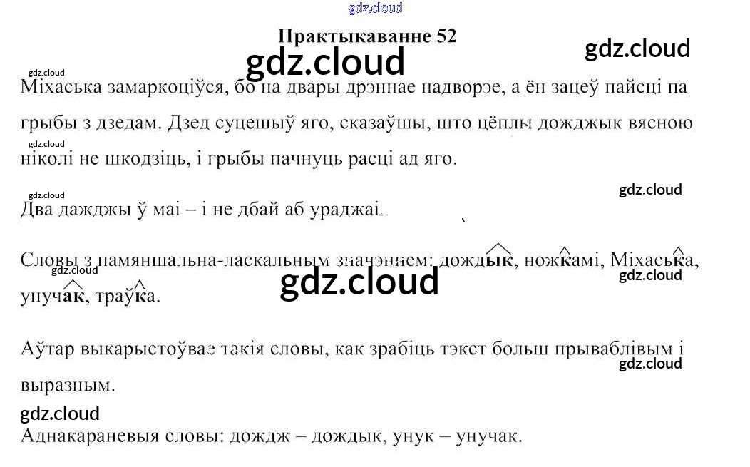 Ответ на задание 52 Учебник Белорусский язык за 3 (третий) класс Свірыдзенка 2017 Часть 1, 2