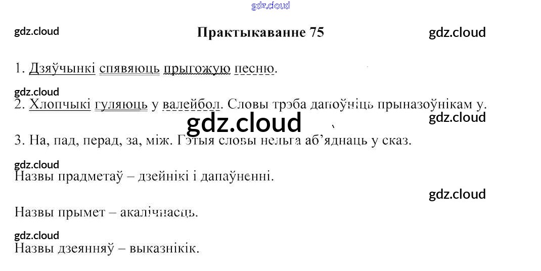 Ответ на задание 75 Учебник Белорусский язык за 3 (третий) класс Свірыдзенка 2017 Часть 1, 2