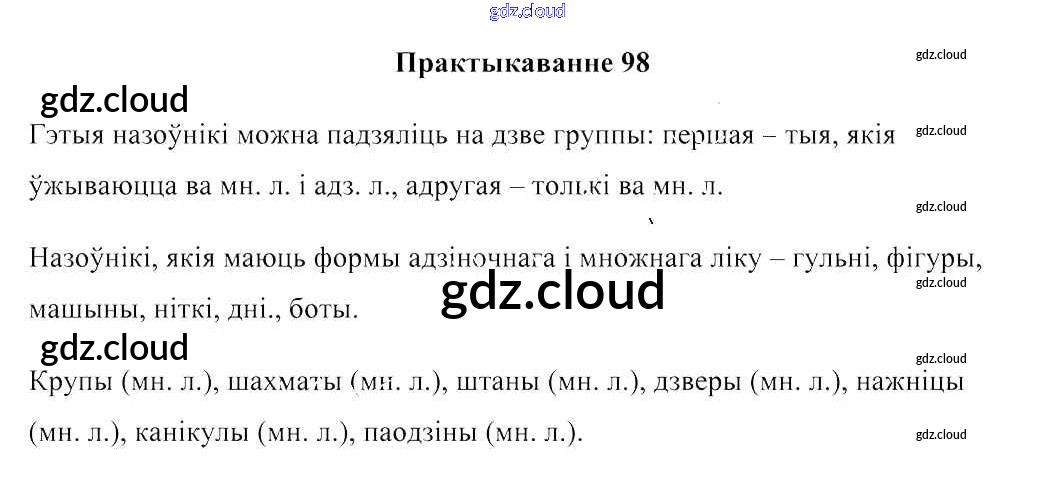 Ответ на задание 98 Учебник Белорусский язык за 3 (третий) класс Свірыдзенка 2017 Часть 1, 2