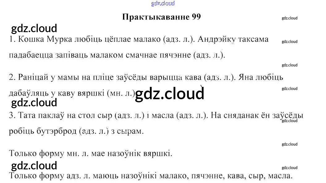 Ответ на задание 99 Учебник Белорусский язык за 3 (третий) класс Свірыдзенка 2017 Часть 1, 2