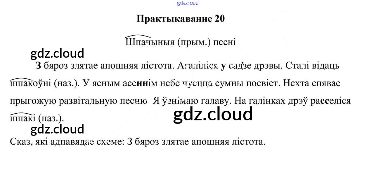 Ответ на задание 20 Учебник Белорусский язык за 4 (четвертый) класс Свірыдзенка 2018 Часть 1, 2