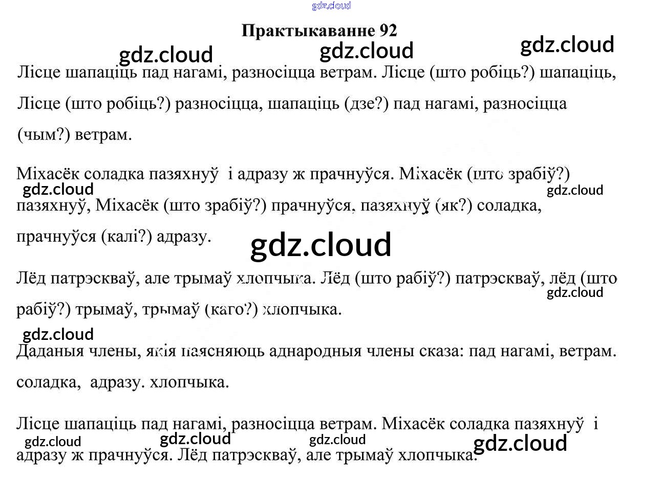 Ответ на задание 92 Учебник Белорусский язык за 4 (четвертый) класс Свірыдзенка 2018 Часть 1, 2