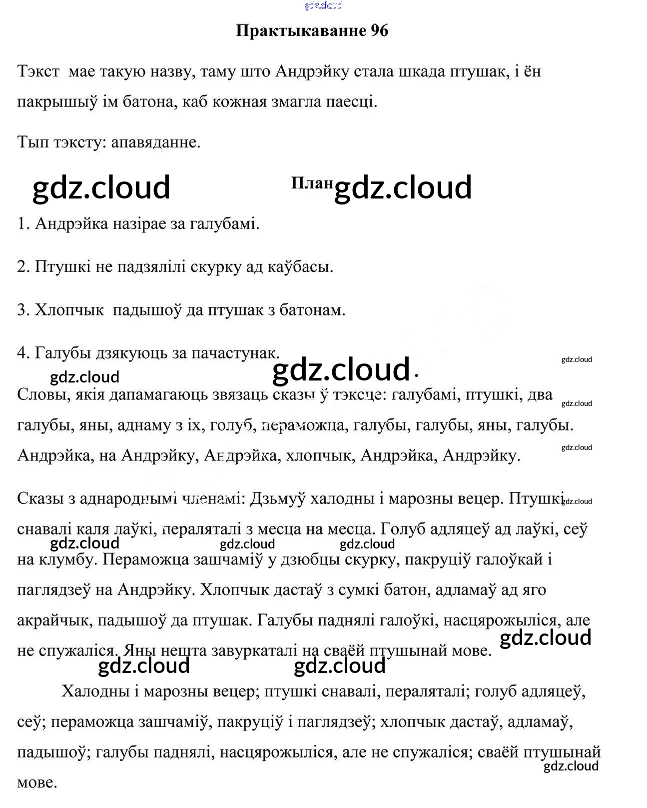 Ответ на задание 96 Учебник Белорусский язык за 4 (четвертый) класс Свірыдзенка 2018 Часть 1, 2