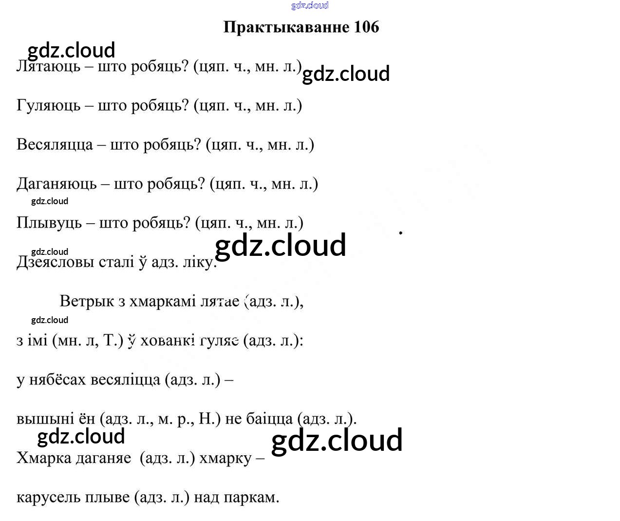 Ответ на задание 106 Учебник Белорусский язык за 4 (четвертый) класс Свірыдзенка 2018 Часть 1, 2