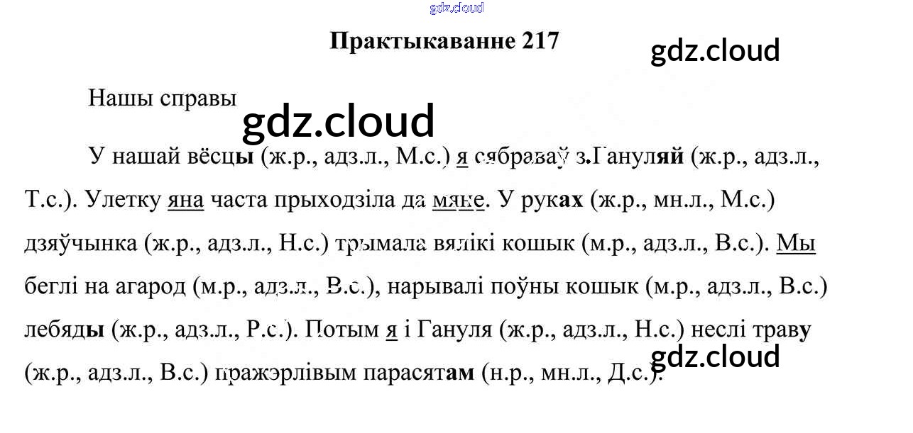 Ответ на задание 217 Учебник Белорусский язык за 4 (четвертый) класс Свірыдзенка 2018 Часть 1, 2