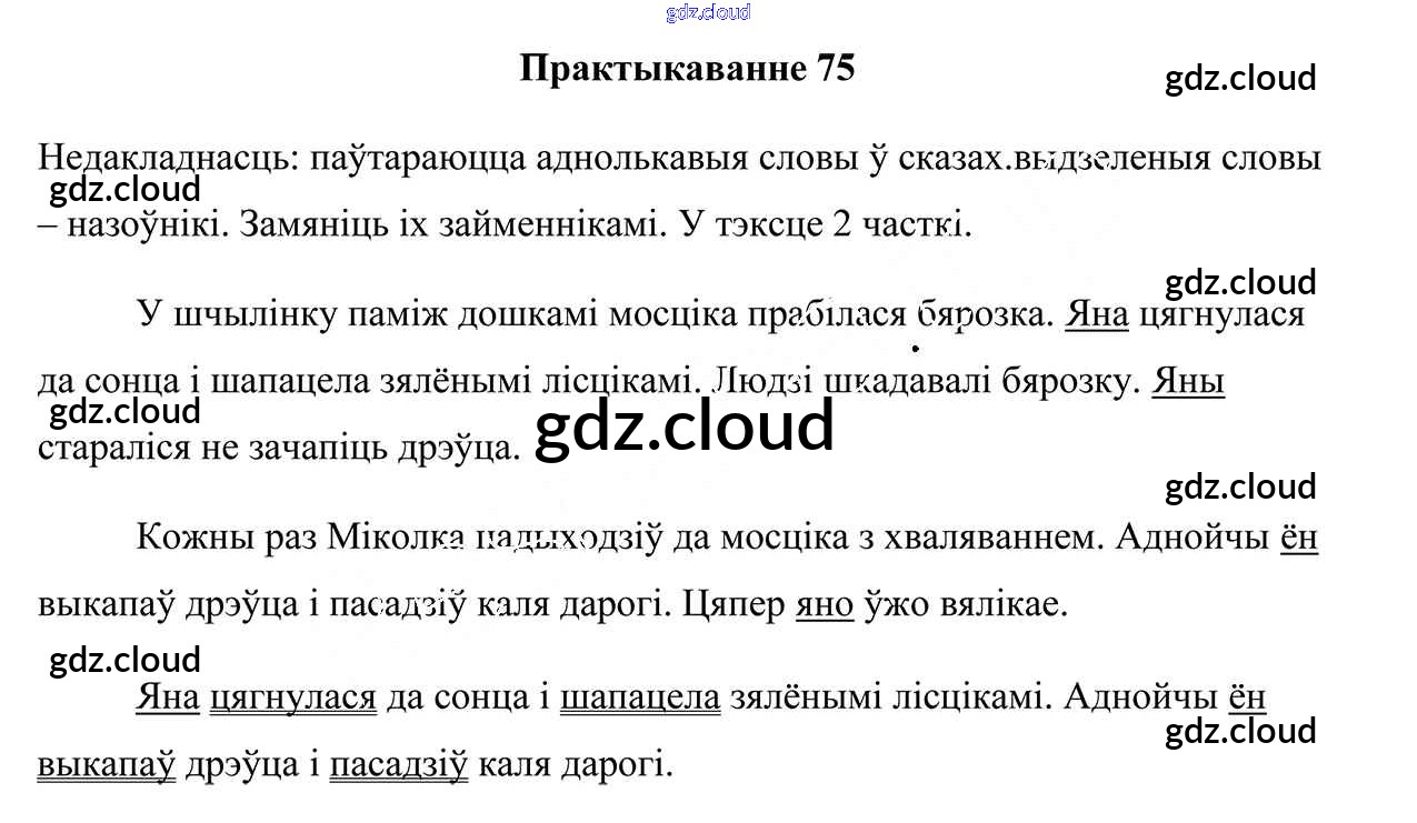 Ответ на задание 75 Учебник Белорусский язык за 4 (четвертый) класс Свірыдзенка 2018 Часть 1, 2