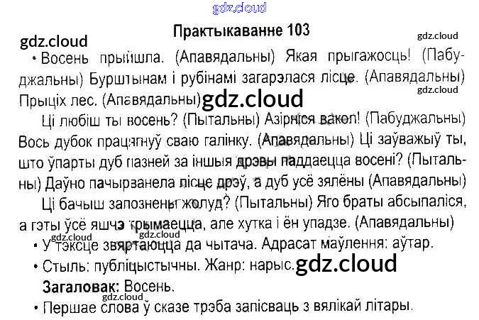 Ответ на задание 103 Учебник Белорусский язык за 5 (пятый) класс Красней, Несцяровіч, Васюковіч, Лаурель 2014 Часть 1, 2
