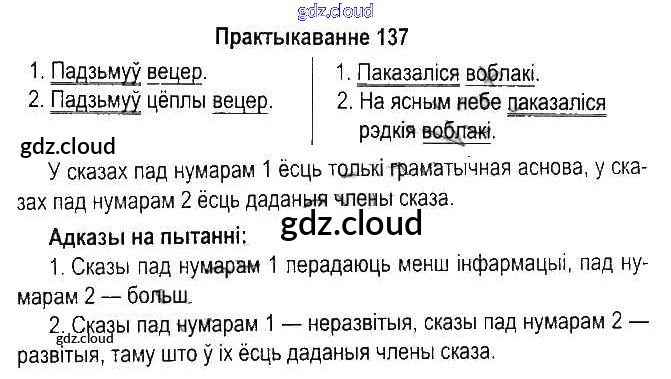 Ответ на задание 137 Учебник Белорусский язык за 5 (пятый) класс Красней, Несцяровіч, Васюковіч, Лаурель 2014 Часть 1, 2