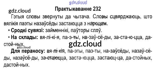 Ответ на задание 232 Учебник Белорусский язык за 5 (пятый) класс Красней, Несцяровіч, Васюковіч, Лаурель 2014 Часть 1, 2