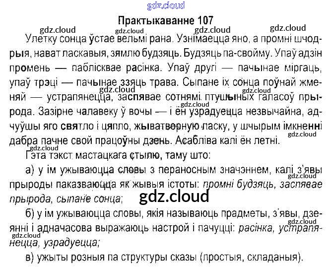 Ответ на задание 107 Учебник Белорусский язык за 5 (пятый) класс Красней, Несцяровіч, Васюковіч, Лаурель 2014 Часть 1, 2