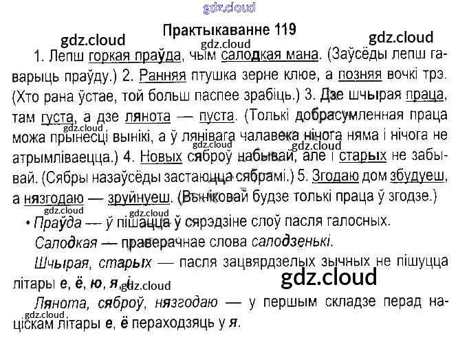 Ответ на задание 119 Учебник Белорусский язык за 5 (пятый) класс Красней, Несцяровіч, Васюковіч, Лаурель 2014 Часть 1, 2