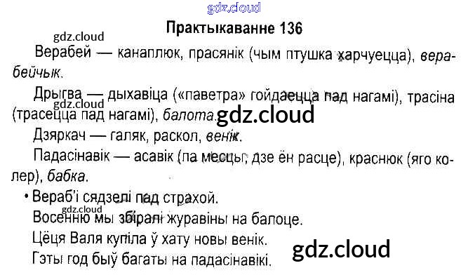 Ответ на задание 136 Учебник Белорусский язык за 5 (пятый) класс Красней, Несцяровіч, Васюковіч, Лаурель 2014 Часть 1, 2