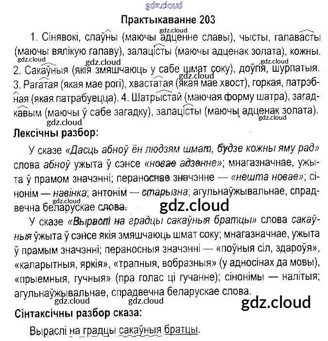 Ответ на задание 203 Учебник Белорусский язык за 5 (пятый) класс Красней, Несцяровіч, Васюковіч, Лаурель 2014 Часть 1, 2