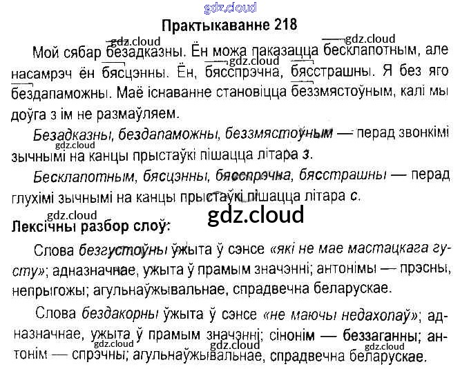 Ответ на задание 218 Учебник Белорусский язык за 5 (пятый) класс Красней, Несцяровіч, Васюковіч, Лаурель 2014 Часть 1, 2