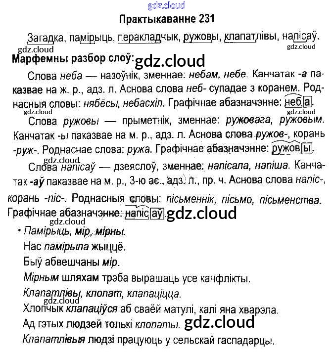 Ответ на задание 231 Учебник Белорусский язык за 5 (пятый) класс Красней, Несцяровіч, Васюковіч, Лаурель 2014 Часть 1, 2