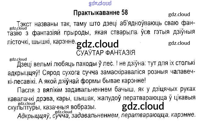 Ответ на задание 58 Учебник Белорусский язык за 5 (пятый) класс Красней, Несцяровіч, Васюковіч, Лаурель 2014 Часть 1, 2