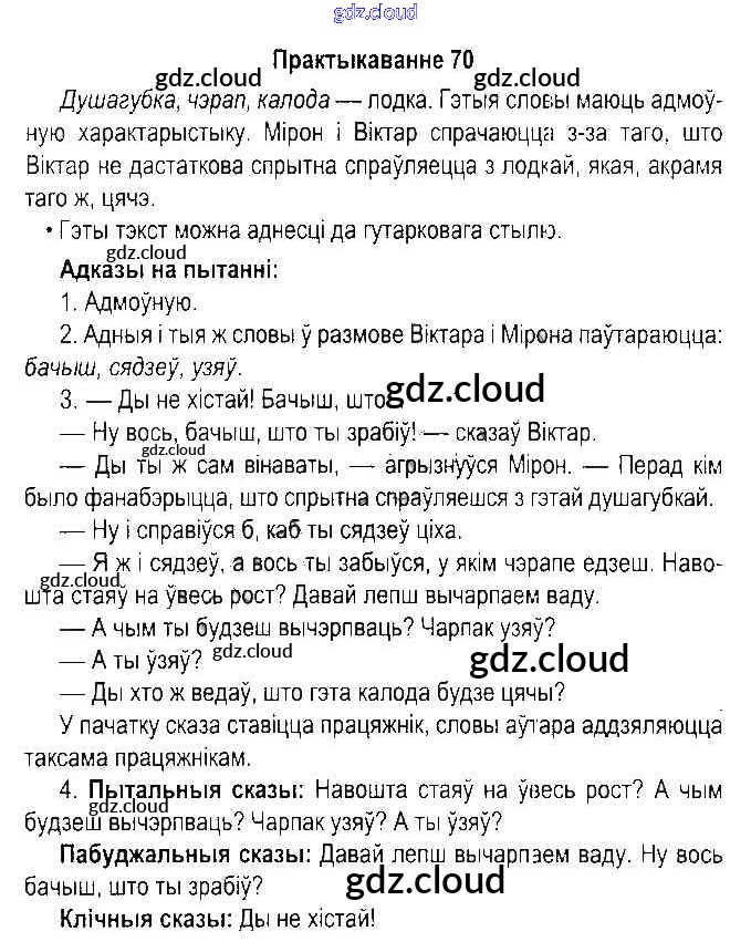 Ответ на задание 70 Учебник Белорусский язык за 5 (пятый) класс Красней, Несцяровіч, Васюковіч, Лаурель 2014 Часть 1, 2