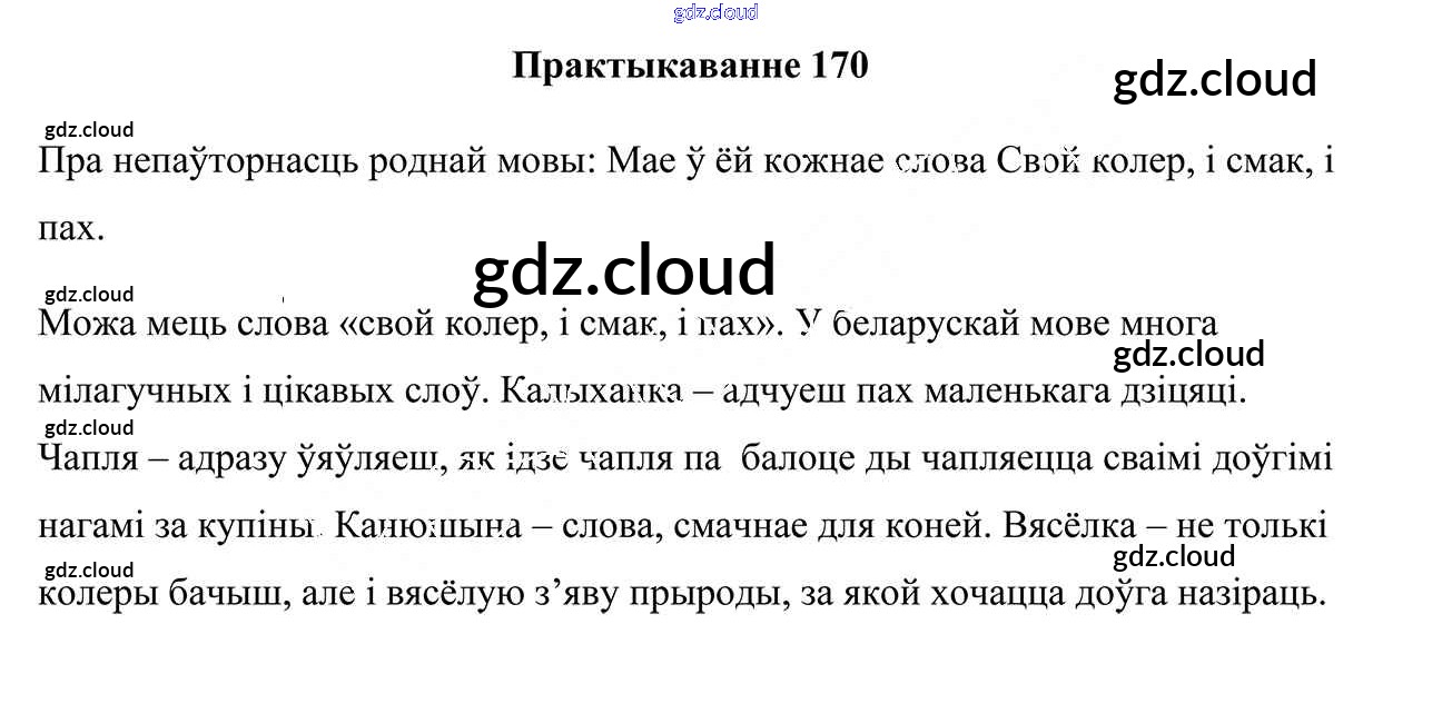 Ответ на задание 170 Учебник Белорусский язык за 5 (пятый) класс Валочка, Зелянко, Мартынкевіч, Якуба 2019 Часть 1.2