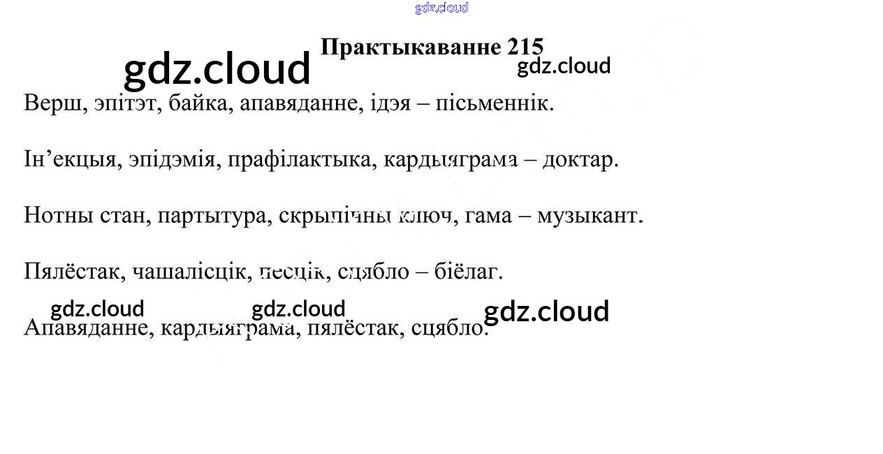 Ответ на задание 215 Учебник Белорусский язык за 5 (пятый) класс Валочка, Зелянко, Мартынкевіч, Якуба 2019 Часть 1.2