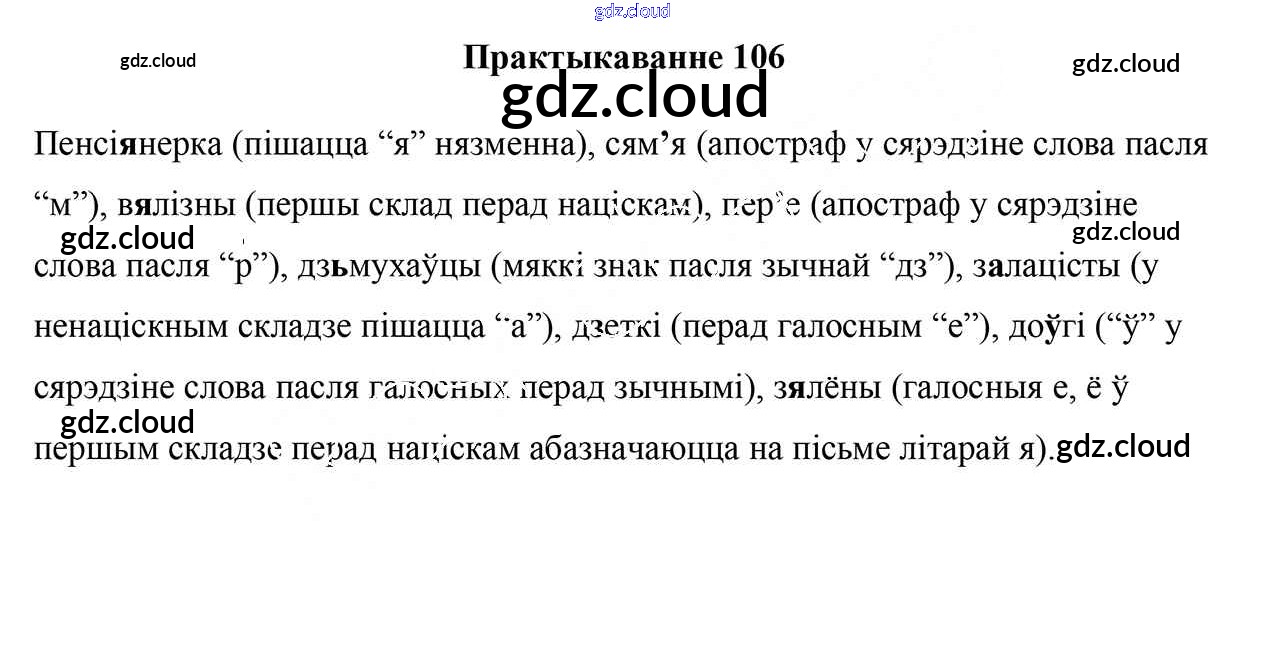 Ответ на задание 106 Учебник Белорусский язык за 5 (пятый) класс Валочка, Зелянко, Мартынкевіч, Якуба 2019 Часть 1, 2