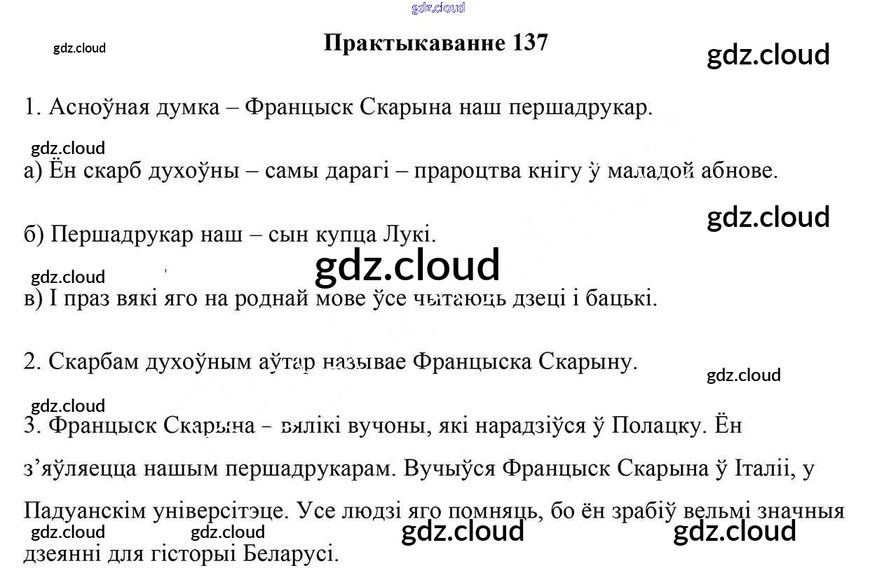 Ответ на задание 137 Учебник Белорусский язык за 5 (пятый) класс Валочка, Зелянко, Мартынкевіч, Якуба 2019 Часть 1, 2