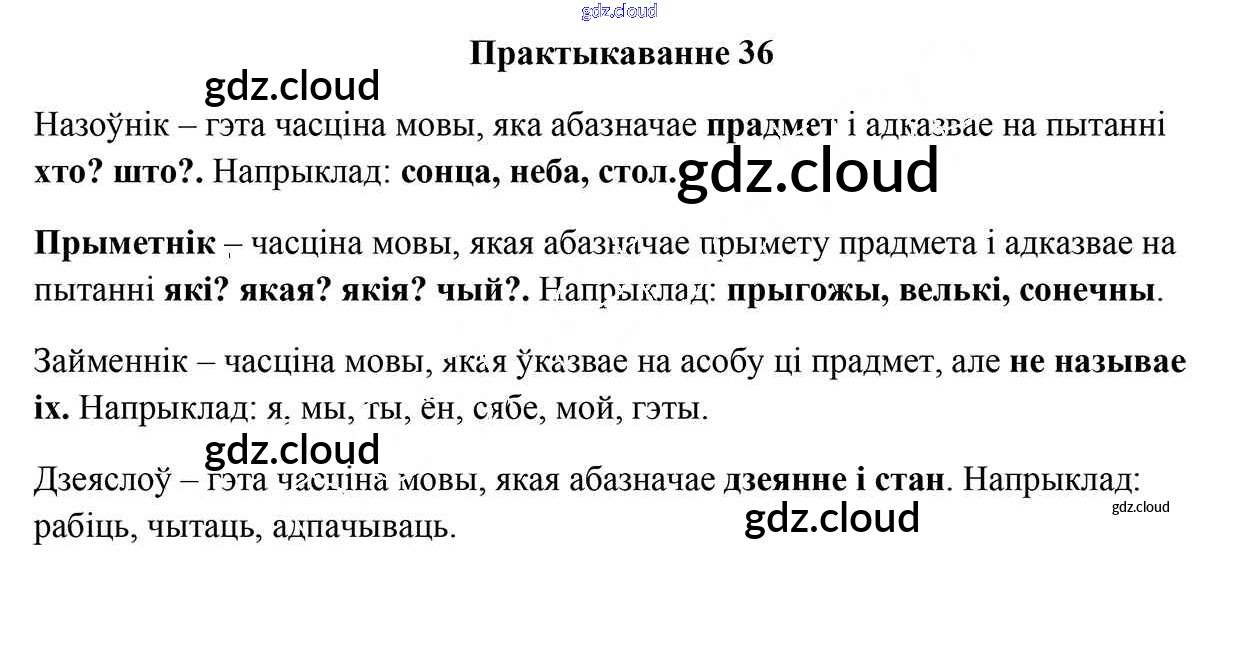 Ответ на задание 36 Учебник Белорусский язык за 5 (пятый) класс Валочка, Зелянко, Мартынкевіч, Якуба 2019 Часть 1, 2