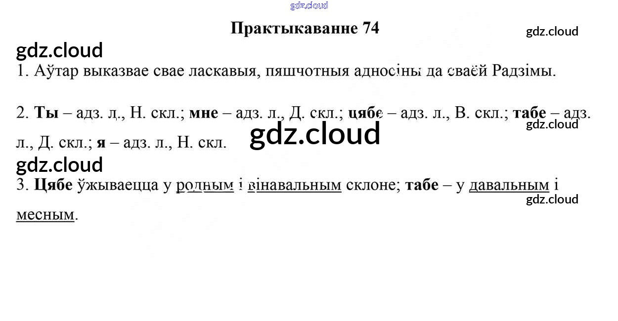 Ответ на задание 74 Учебник Белорусский язык за 5 (пятый) класс Валочка, Зелянко, Мартынкевіч, Якуба 2019 Часть 1, 2