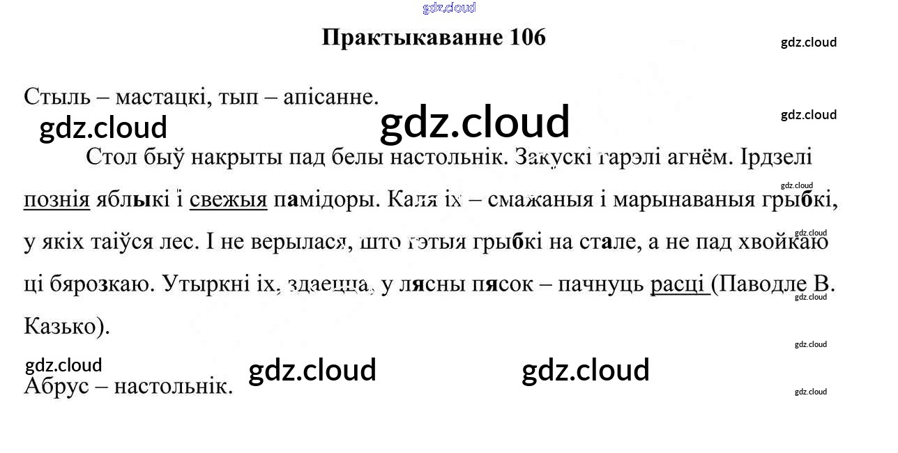 Ответ на задание 106 Учебник Белорусский язык за 5 (пятый) класс Валочка, Зелянко, Мартынкевіч, Якуба 2019 Часть 1, 2